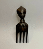 A comb that is more than just a tool, it’s a piece of art you can hold. Handcarved from rich African Ibano wood, this Nuqta wooden comb features the elegant silhouette of an African lady, honoring the beauty and strength of womanhood with every curve.
